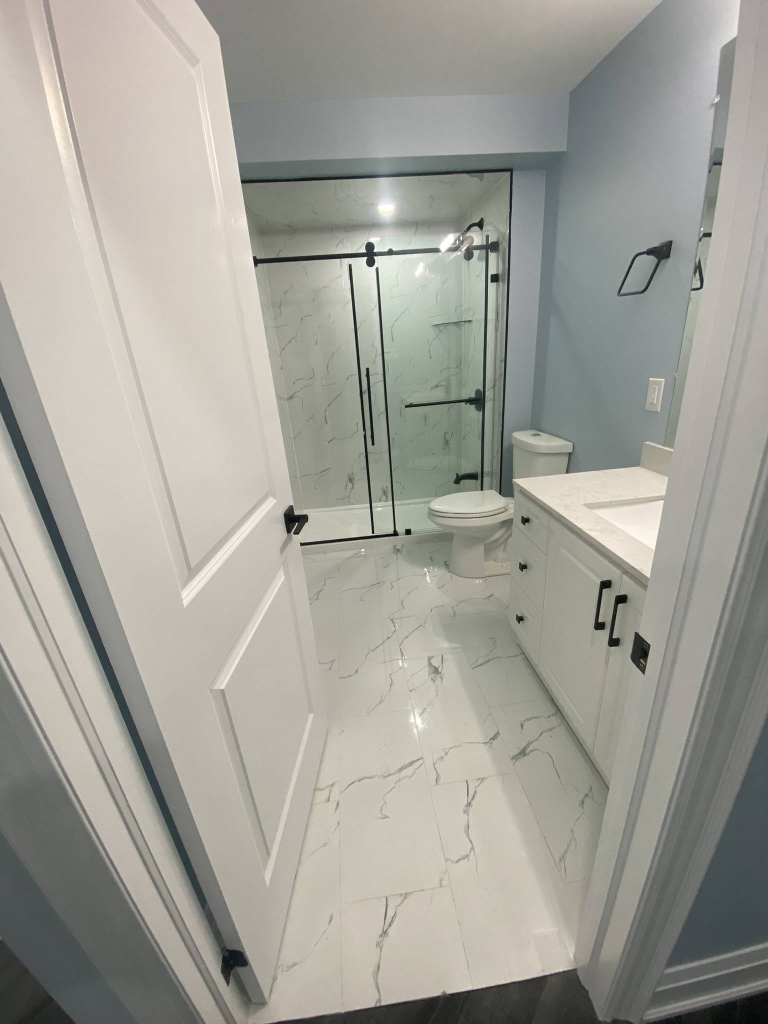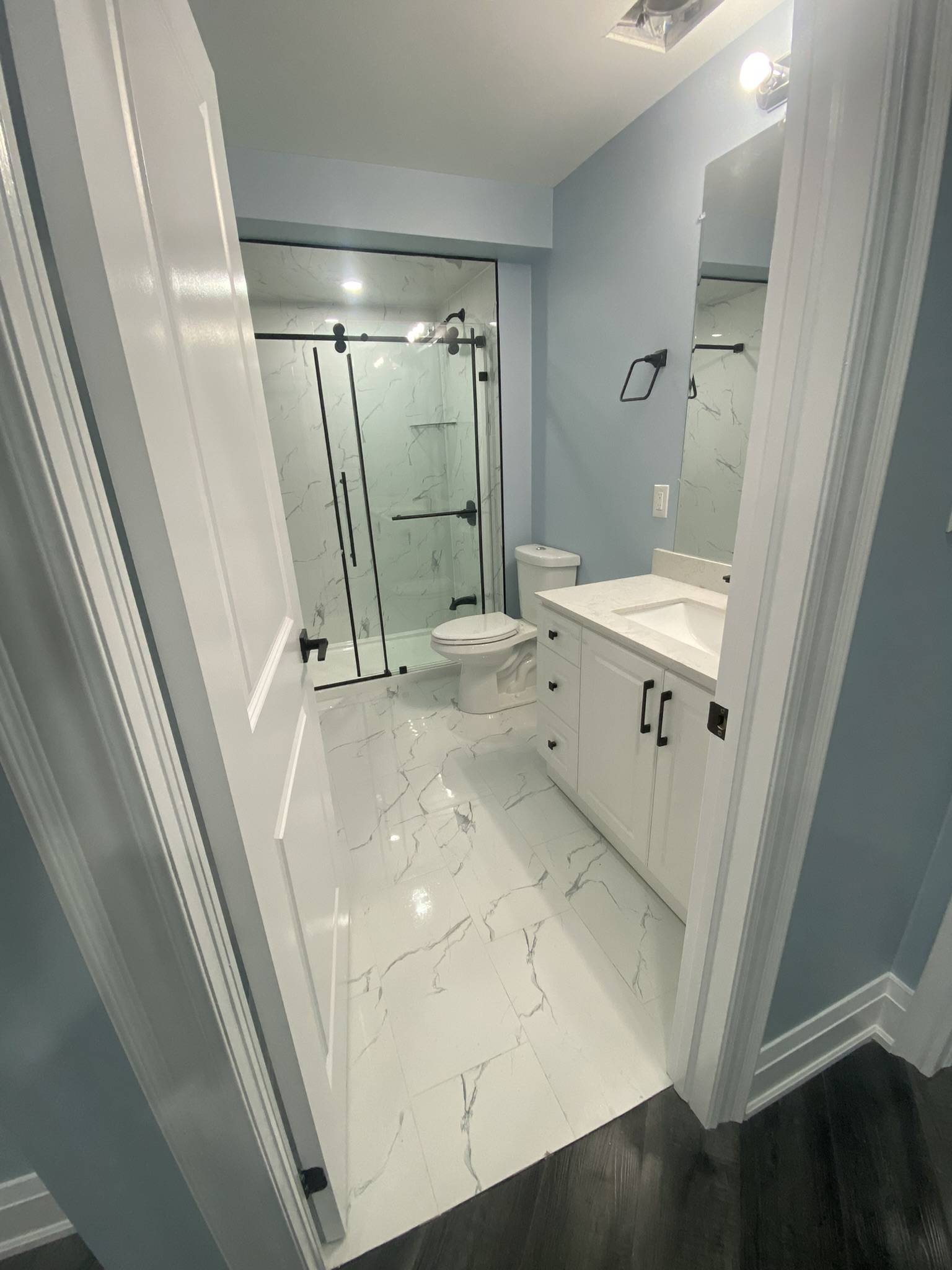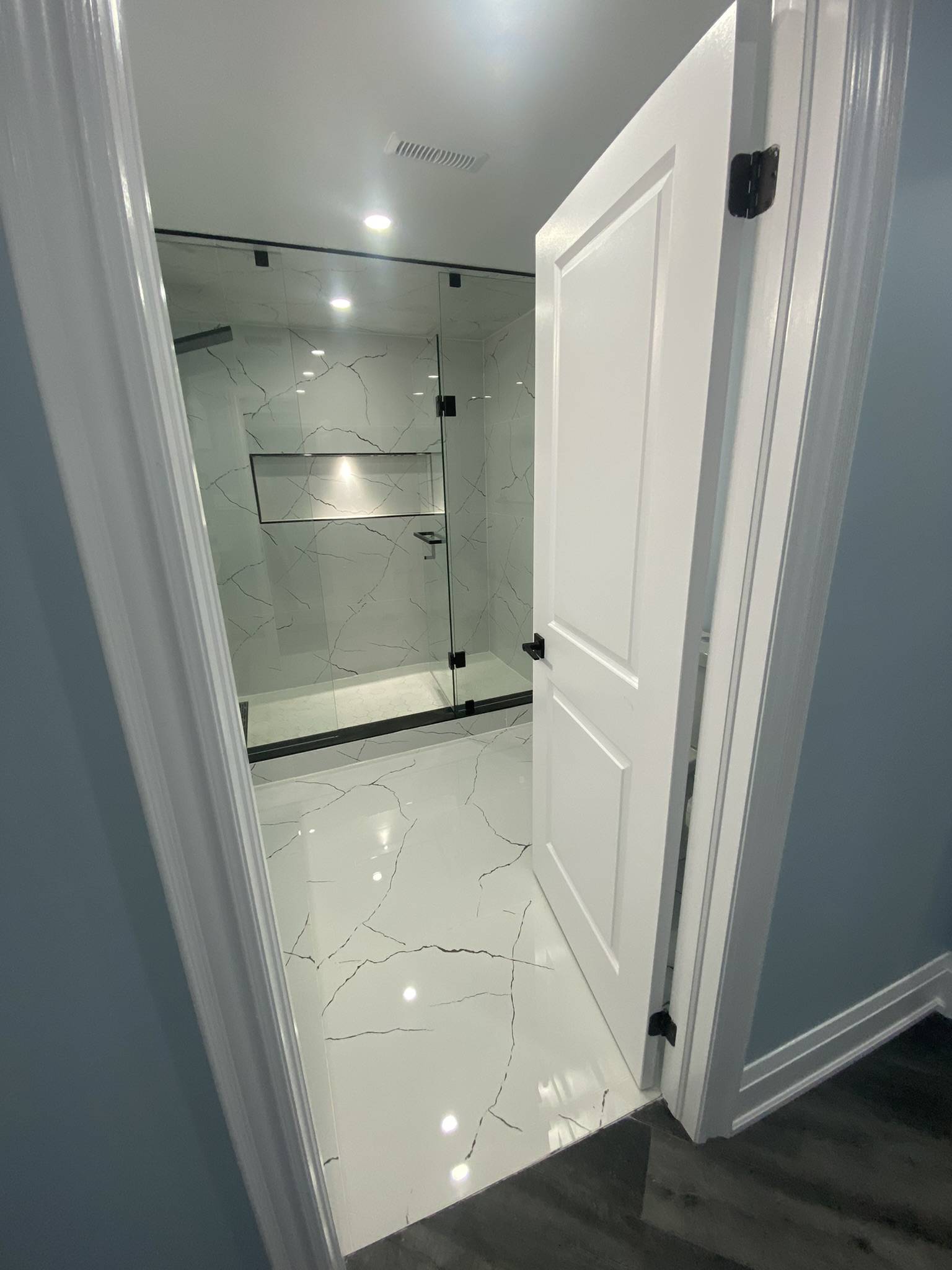All Reno Solutions completed a modern and elegant bathroom remodelling project at 95 Sarracini Crescent Our team transformed the space with upgraded fixtures, refined finishes, and a more functional layout. This renovation highlights our dedication to quality workmanship and our commitment to delivering beautifully designed, long-lasting bathroom spacesB