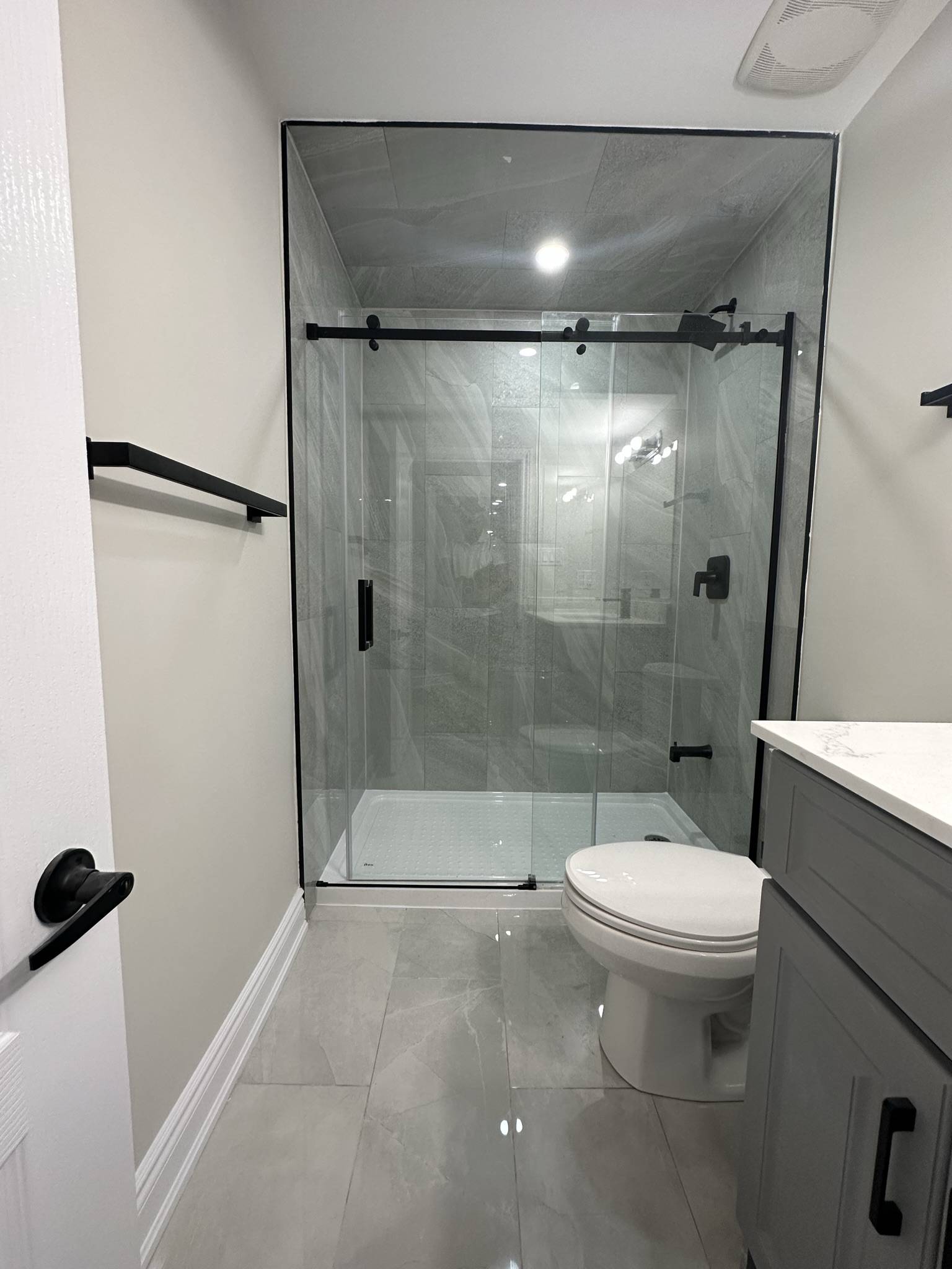 All Reno Solutions completed a modern and elegant bathroom remodelling project at 95 Sarcini. Our team transformed the space with upgraded fixtures, refined finishes, and a more functional layout. This renovation highlights our dedication to quality workmanship and our commitment to delivering beautifully designed, long-lasting bathroom spaces.